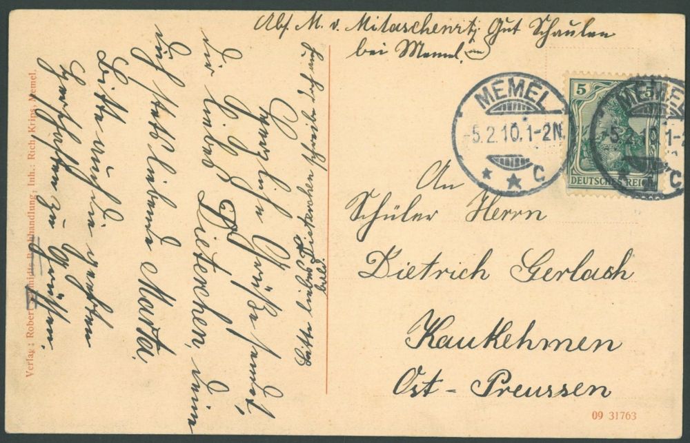 Leidėjas: Robert Schmidt's Buchhandlung, Inh. Rich. Krips, Memel